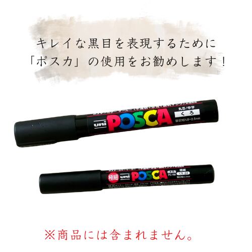 インクの特性上、ボンドやレジンとの相性によっては「黒目」が紫っぽく変色する事があります。キレイな黒目を表現するために「ポスカ」の使用を推奨しています。